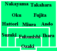 Head Coach Joco says, the formation of Jubilo in this year is 3-5-2. In last year, it was 4-4-2 basically. But, members are almost the same as last year. Nakayama and Takahara are FW(2-top). A right side (or left side) doesn't care even about which out of two people. If they got tired, Kawaguchi plays. Offinseve-MF are acted by Oku and Fujita. Left wing is Hattori, Right wing is Ando, and middle is Miura. Fukunishi playes as Libero. Suzuki and Ihara are Side-Back. GK is Ozaki (It couldn't decide whether it was Ogami). It feels not bad though this formation is orthodox. |