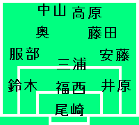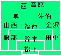タカと西君のFWは、相手にとっても充分脅威でしょう。現日本代表のおっくんに、期待も込めて大学No.1MFと表される佐伯クンを攻撃的に使ってみましょう。ヤマ、フク、ジョーを守備的DFに使って、中盤を支配できるハズ。ハット、ヒデト、マコをDFにして、ジョコさんの好きな(?)3-5-2です。GKはユース昇格の松下クン。 今年活躍してくれるにこしたことはないのですが、2002年ワールドカップで、このメンバーが日本代表の主力であって欲しいですね。 |